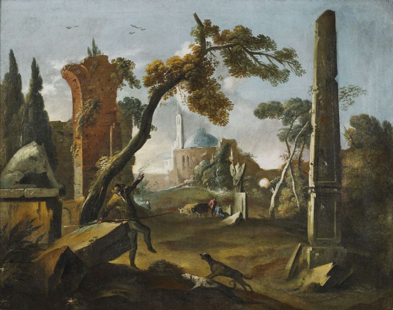 La tela qui raffigurata è opera tipica del Vetturali, artista lucchese, che si inspirò allo stile veneziano soprattutto nello sviluppo del disegno seppur con una tavolozza cromatica meno squillante, ma più pacata e risoluta nei suoi passaggi, nelle sue vedute archeologiche con un gusto più concreto ed aderente alla realtà tipico della pittura lucchese del '700.